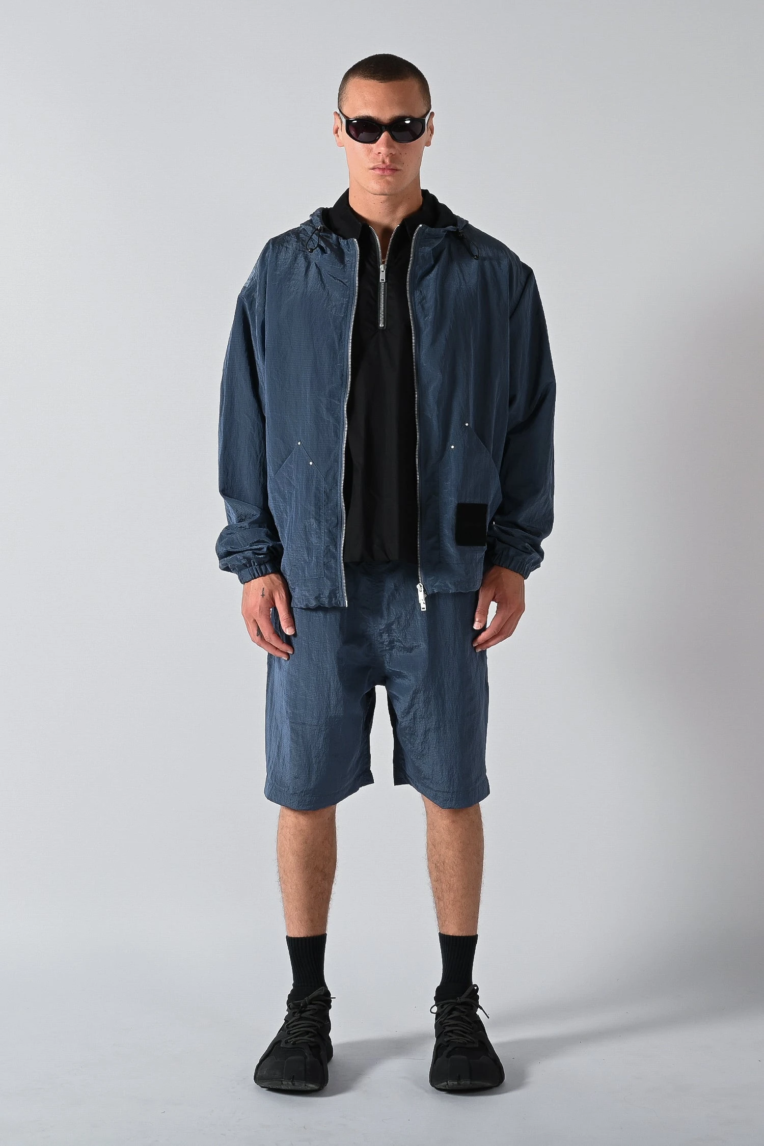 Versatile relaxed fit hooded jacket with dropped shoulders, front patch pockets, 2-way zip through front opening, adjustable elasticated hood and waistband and internal taped seams.