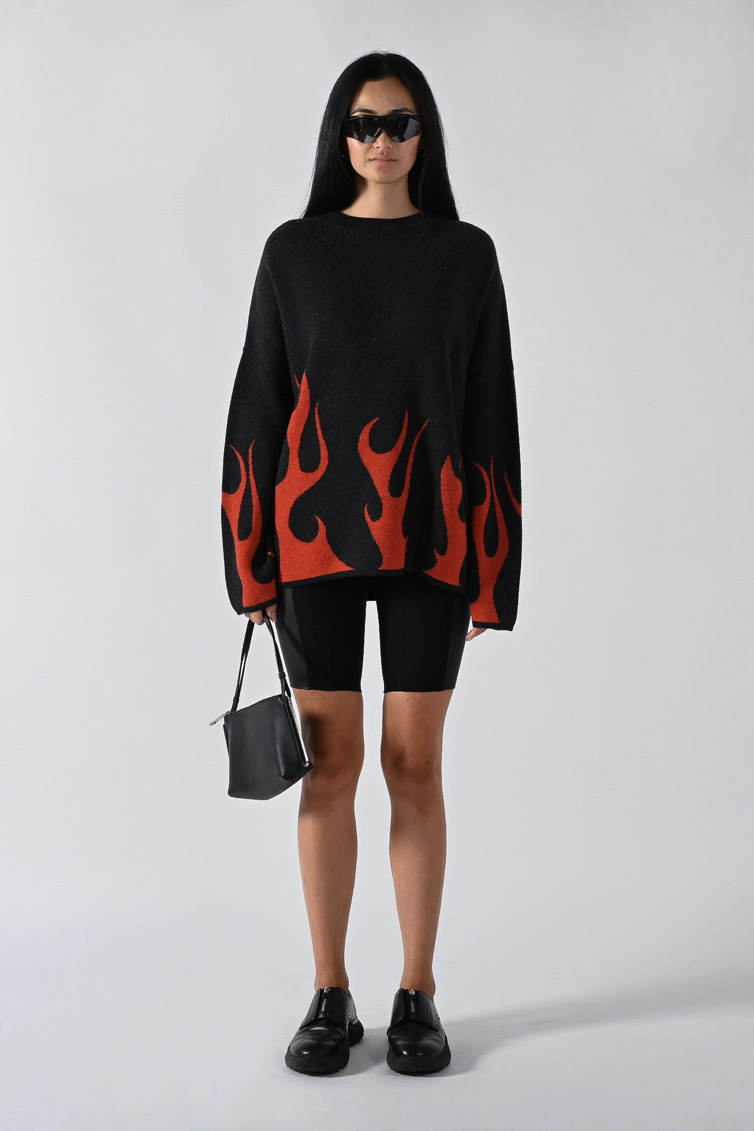 100% Australian Merino Wool and certified in partnership with The Woolmark Company. Oversized fit crew neck unisex knitted sweater with dropped shoulders and a slight extension of length in the sleeves.Â