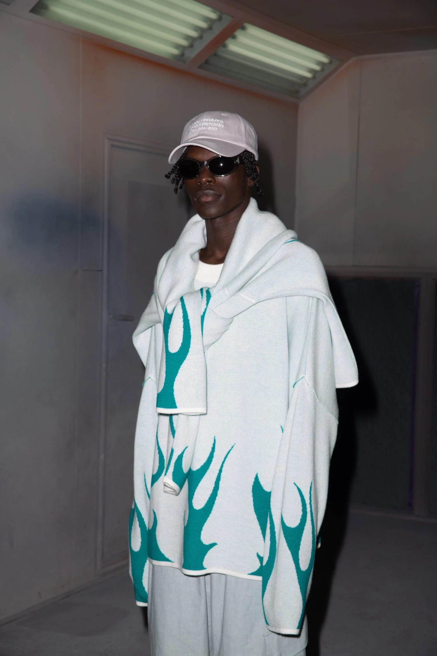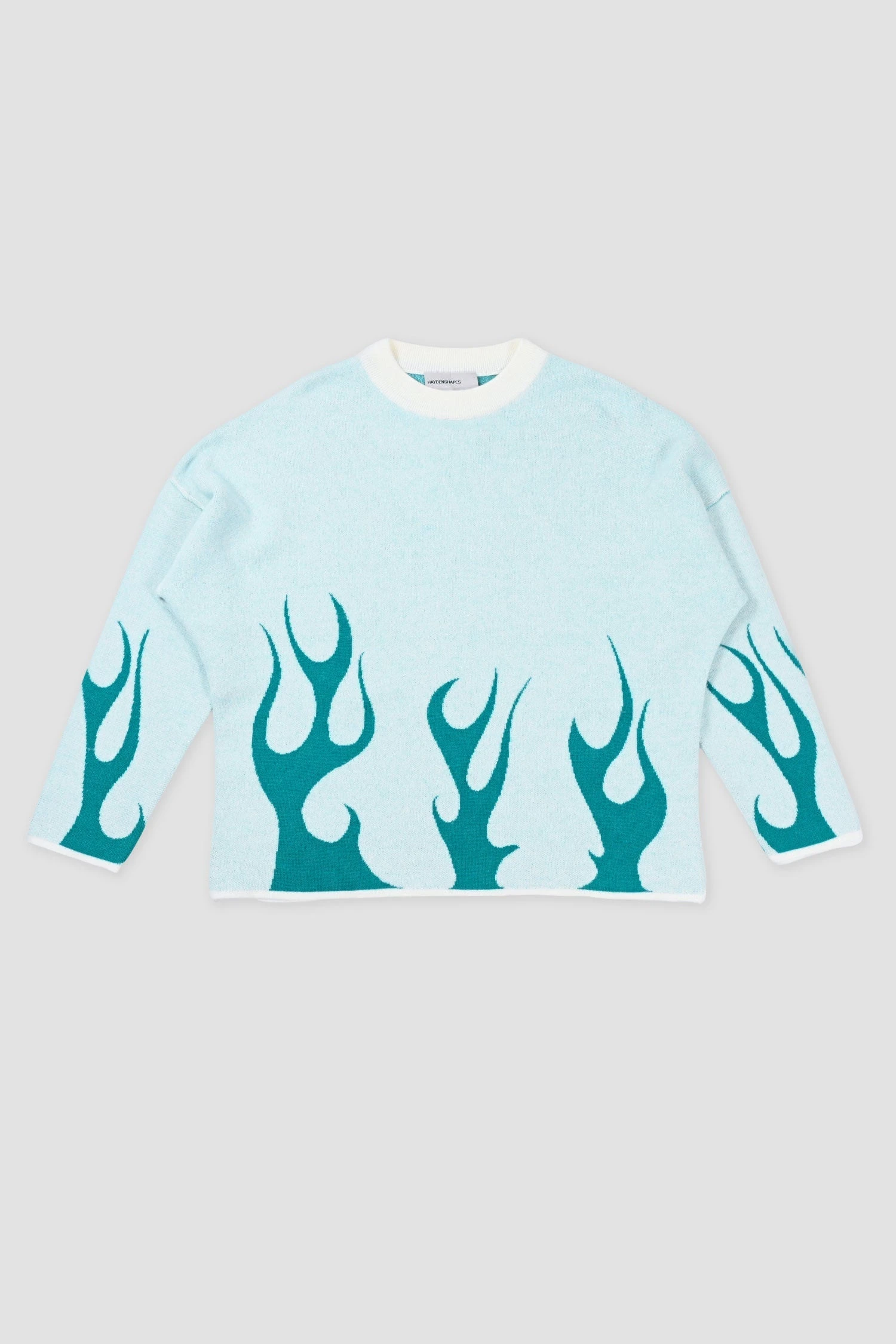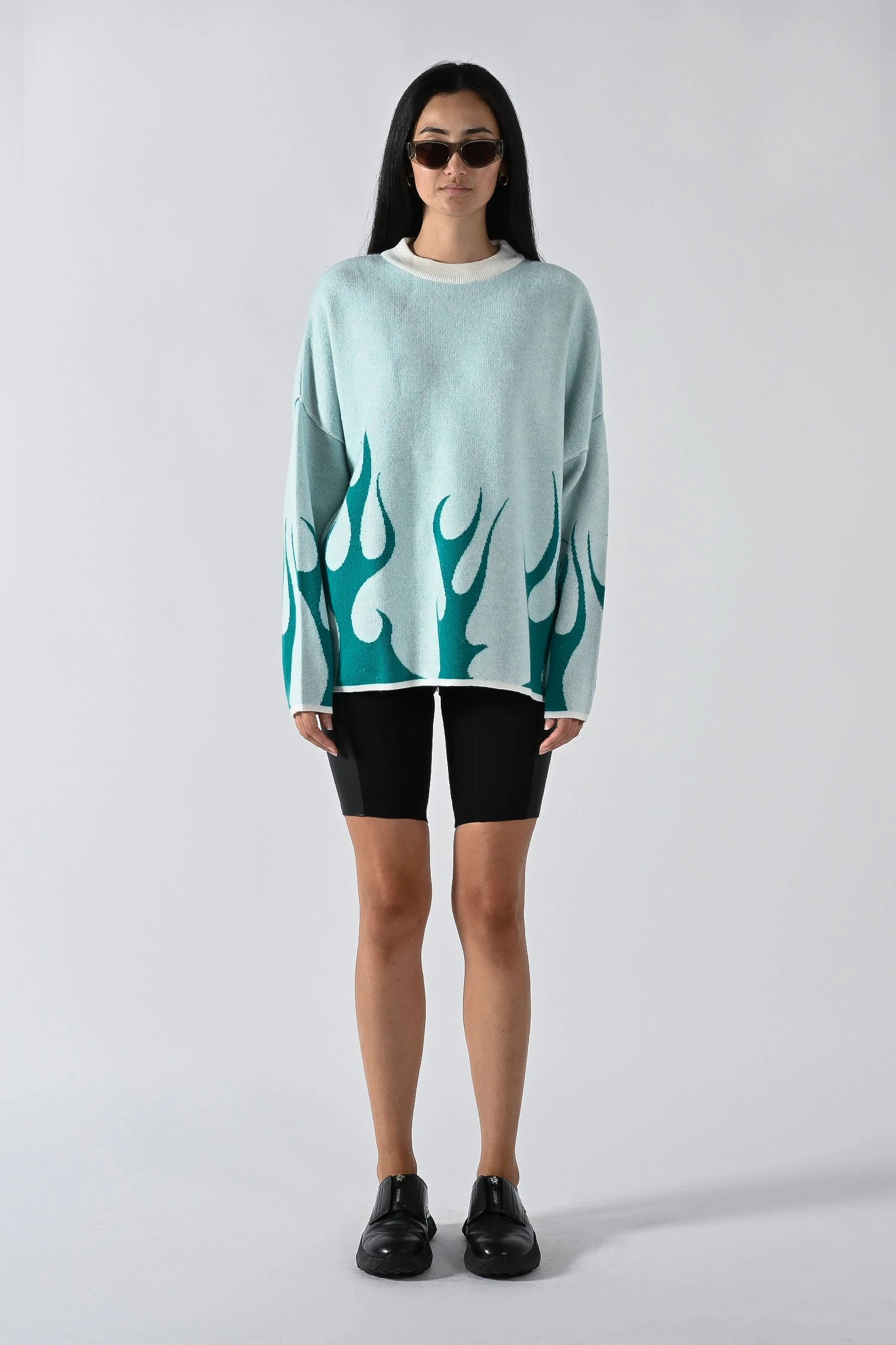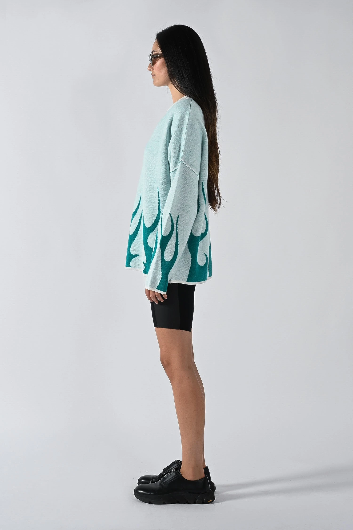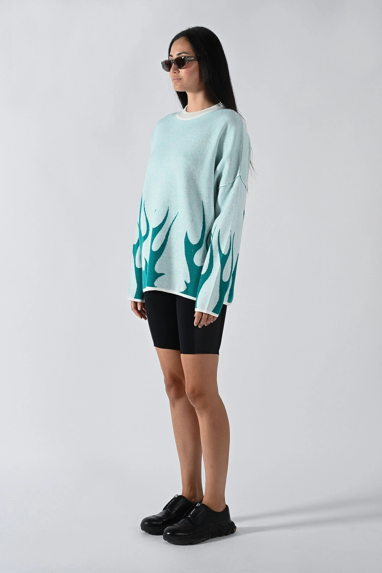100% Australian Merino Wool and certified in partnership with The Woolmark Company. Oversized fit crew neck unisex knitted sweater with dropped shoulders and a slight extension of length in the sleeves.Â