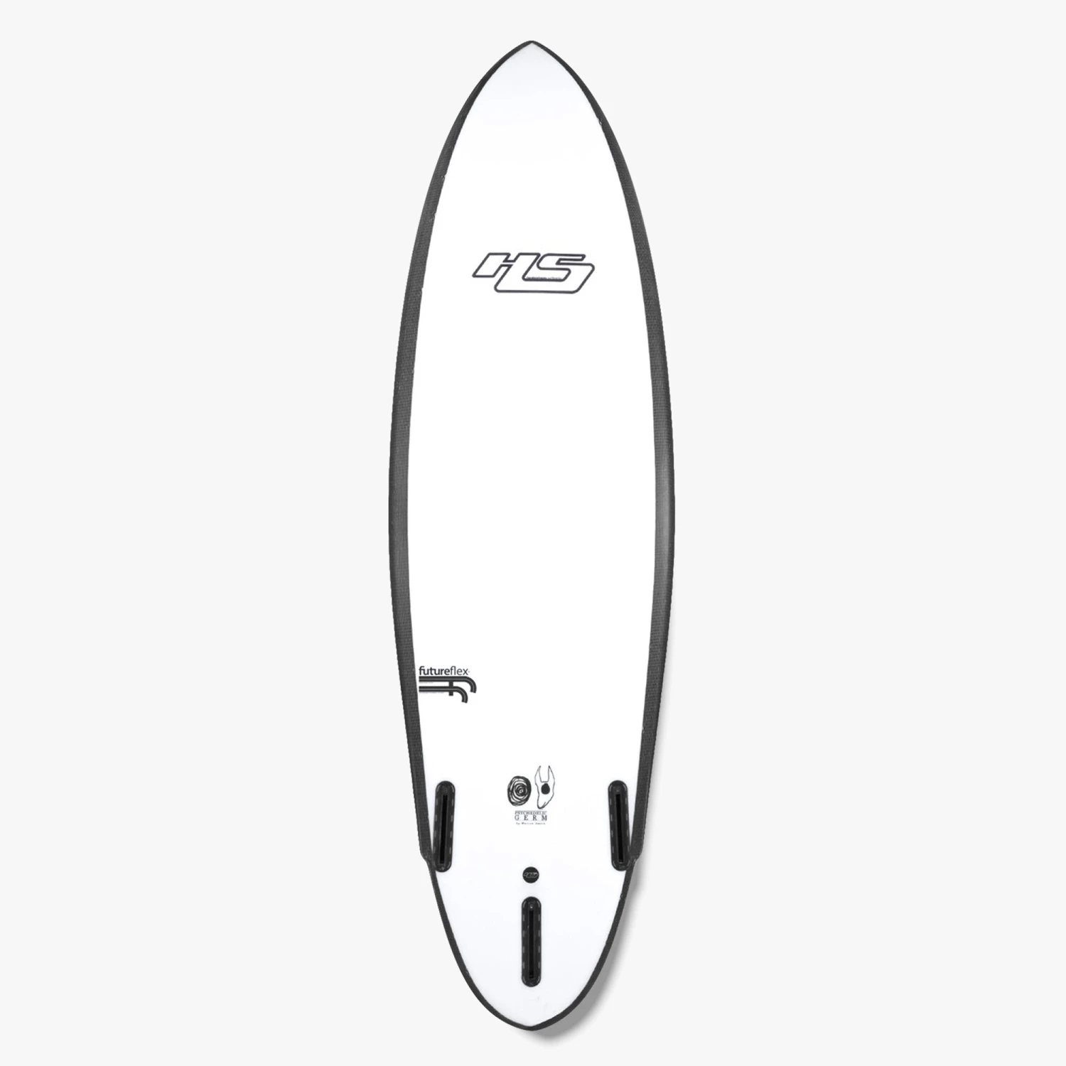 Similar to that of a boat design, the hull softens the water flow through the entry of the board. It hits the ridge of the hull, and is dispersed into the single concave. When taking off late, this assists in planing through choppy water or helping to land critical manoeuvres. The side cuts shorten the radius of turns, meaning the board will draw a much tighter arc. During bottom turns, it engages the 3 dimensional curve that the side cut creates, which draws the surfer up the wave face. This then transitions onto the inside rail which pulls the surfer around and back into the pocket with ease.