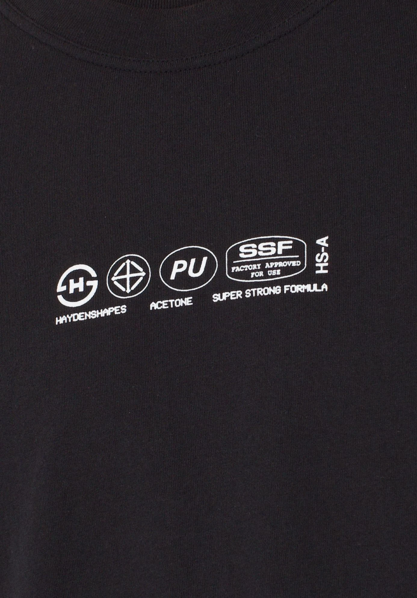 Made of a 220gsm high twist cotton jersey, the Shapers Tee is a classic everyday and regular cut –  the ideal classic staple tee. The ‘Super Strong Formula’ art takes cues from Haydenshapes custom manufacturing HQ in Sydney Australia and pays homage to foam blanks, a key material used in surfboard manufacturing and a particular EPS foam cell formula type.