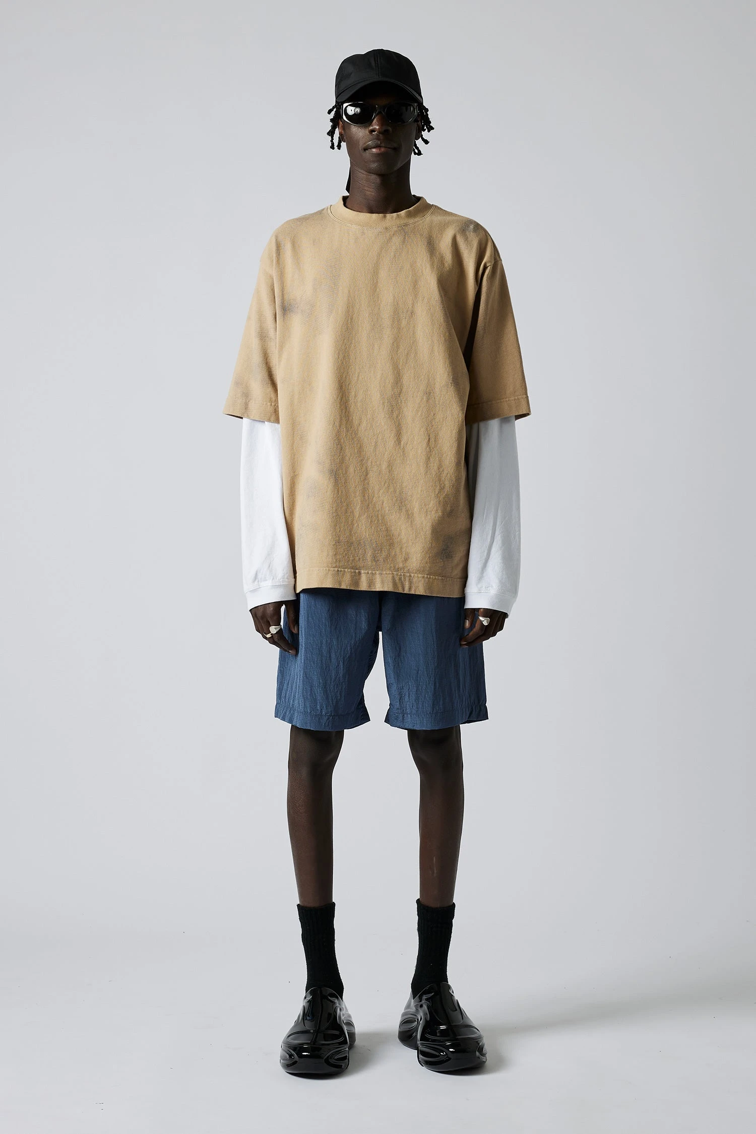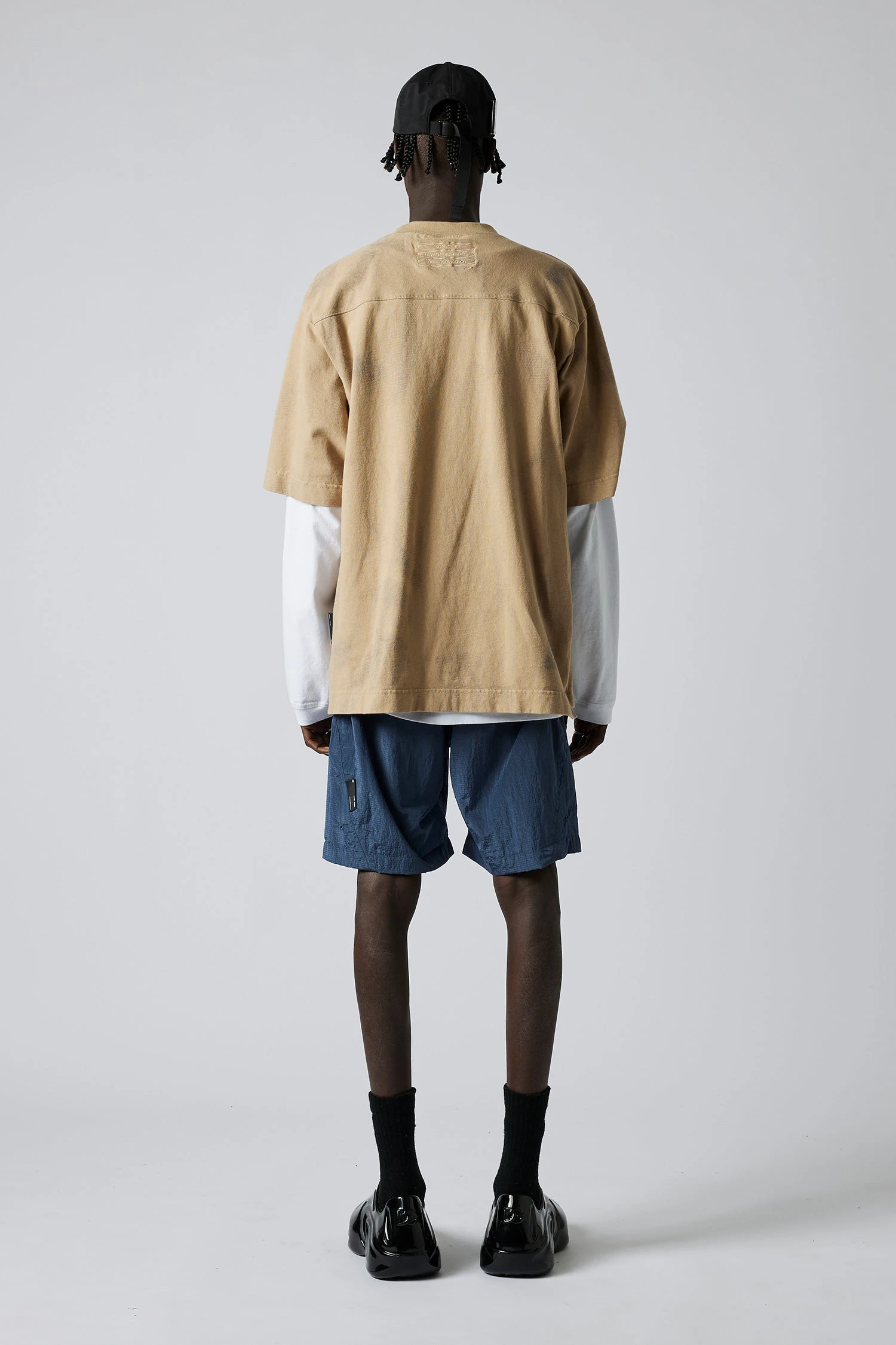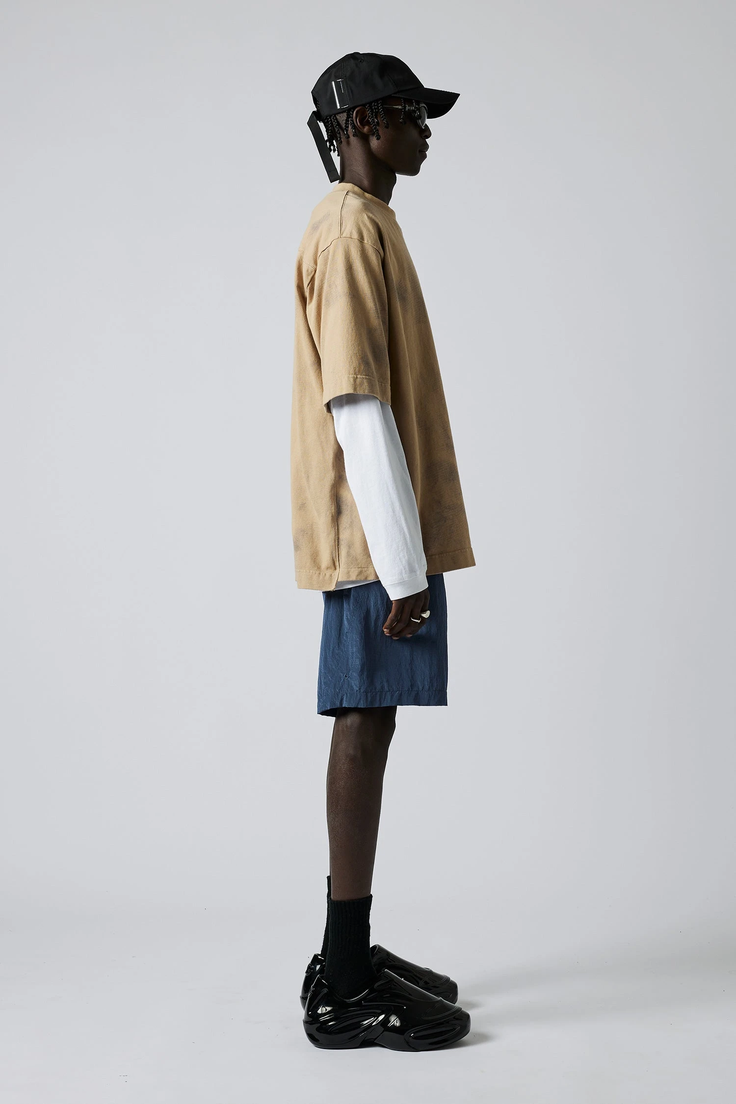 Made of a mid weight 270gsm Cotton in a relaxed slighty oversized fit, the Volume Tee features cover stitched cross grain fabric detail in the top back and side panels which reveal a signature stepped hem. The spray graphic yardage of this style is finisihed with a subtle tonal embroidered brand logo detail.