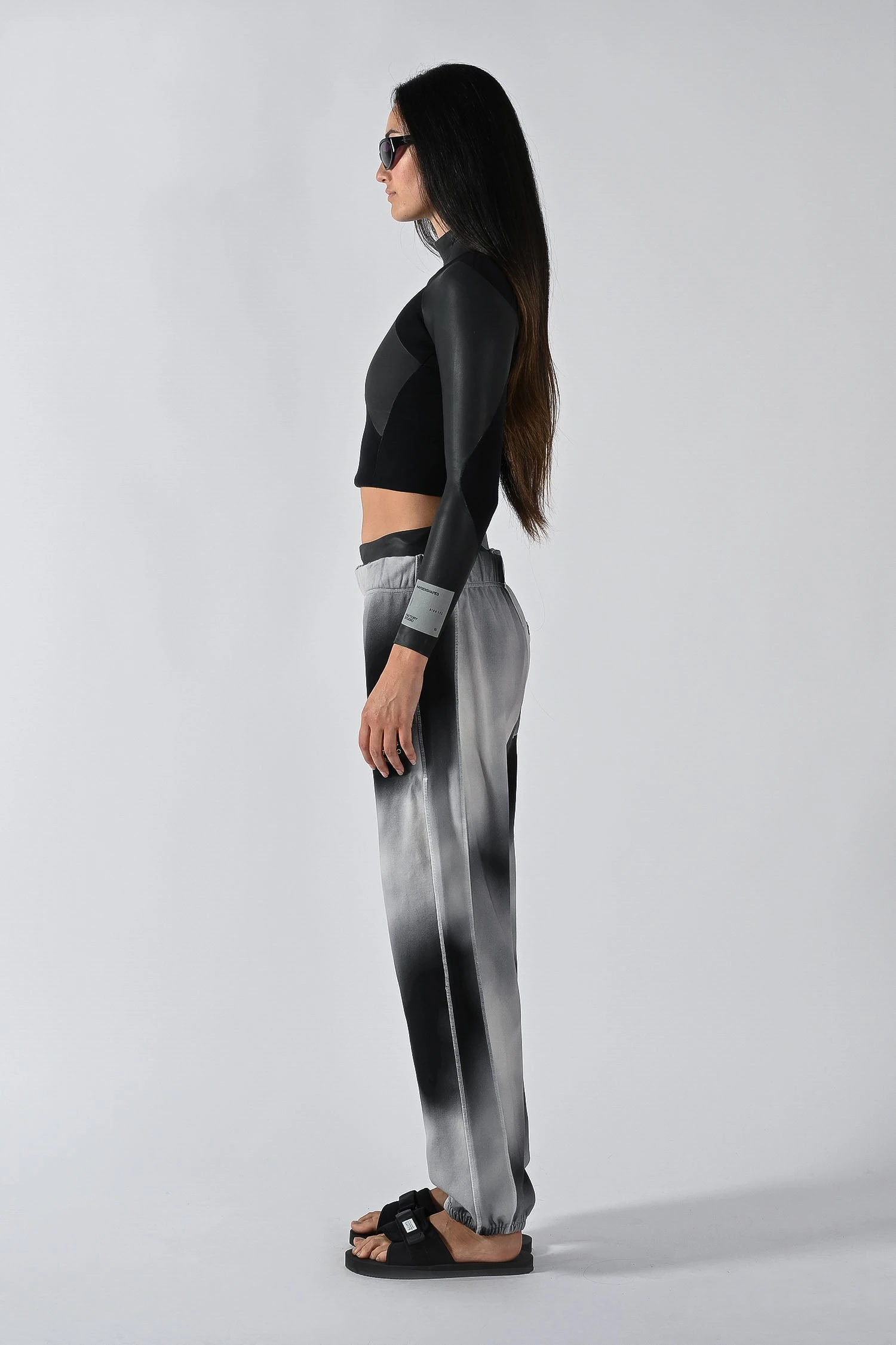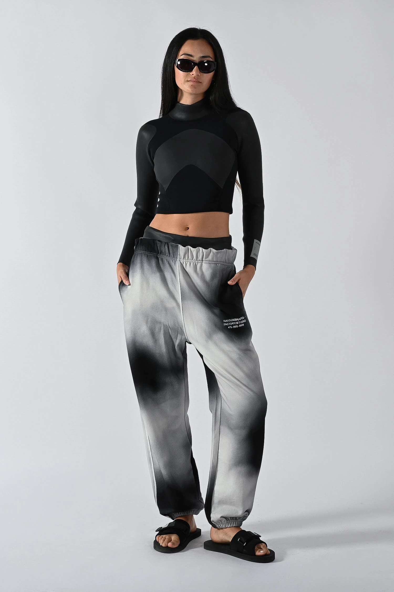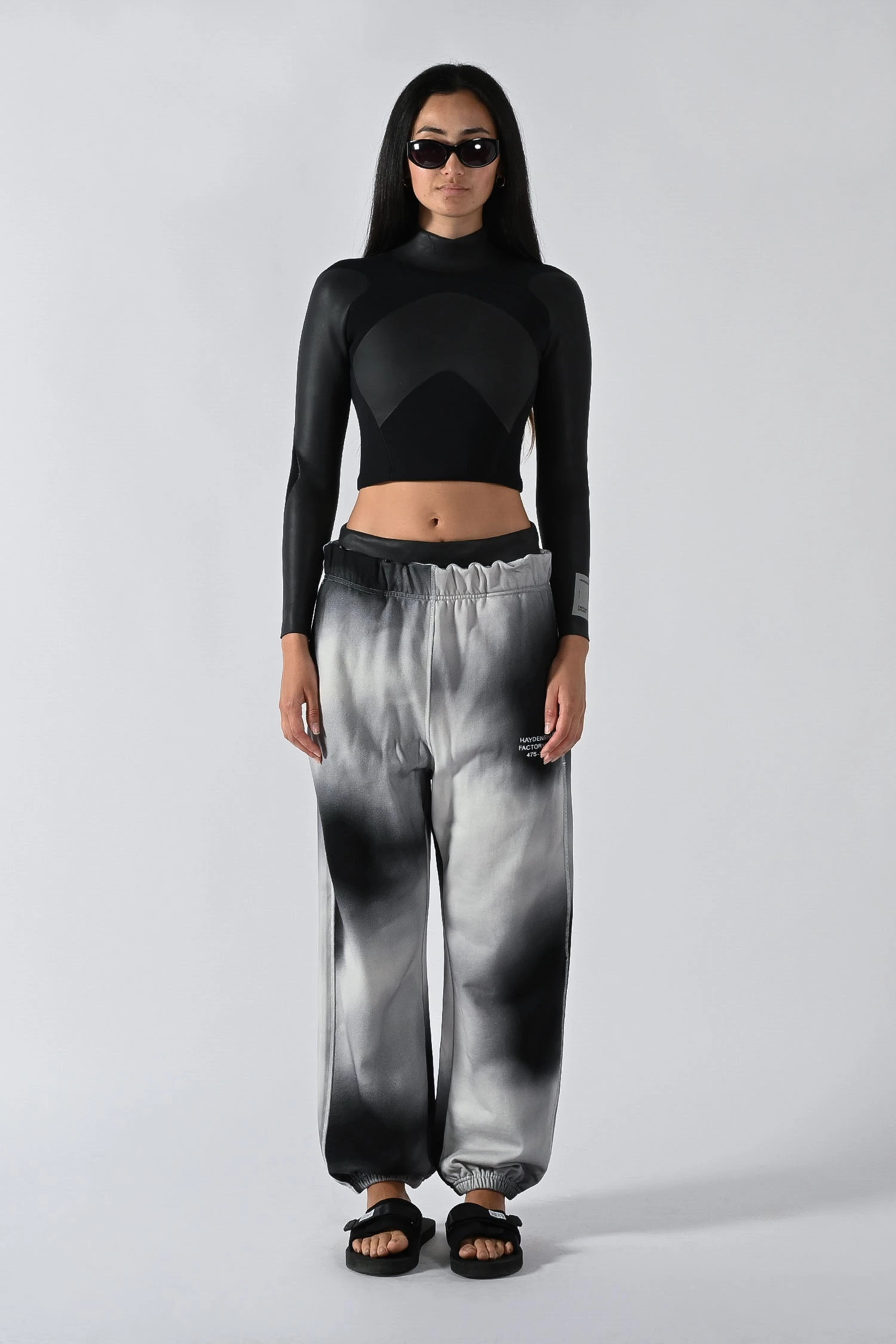 Made of a 400gsm semi brushed french terry cotton, the Volume Track Pants are a relaxed fit with a tapered wide leg  cut featuring cover stitched side seams, a woven brand label with a PVC outer layer, elasticised cuffs and waistband with a silicon dipped drawcord.Â